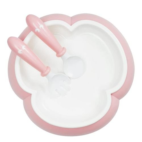 Bol en Silicone avec Cuillère et Fourchette – Rose – Antidérapant