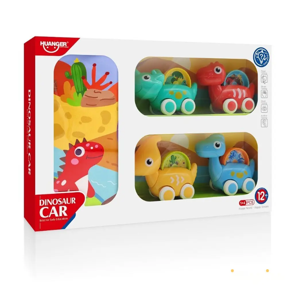 🦖 4 dinosaures roulants aux couleurs vives et formes rigolotes