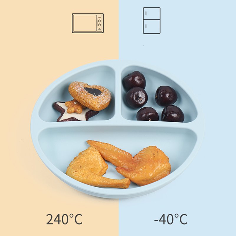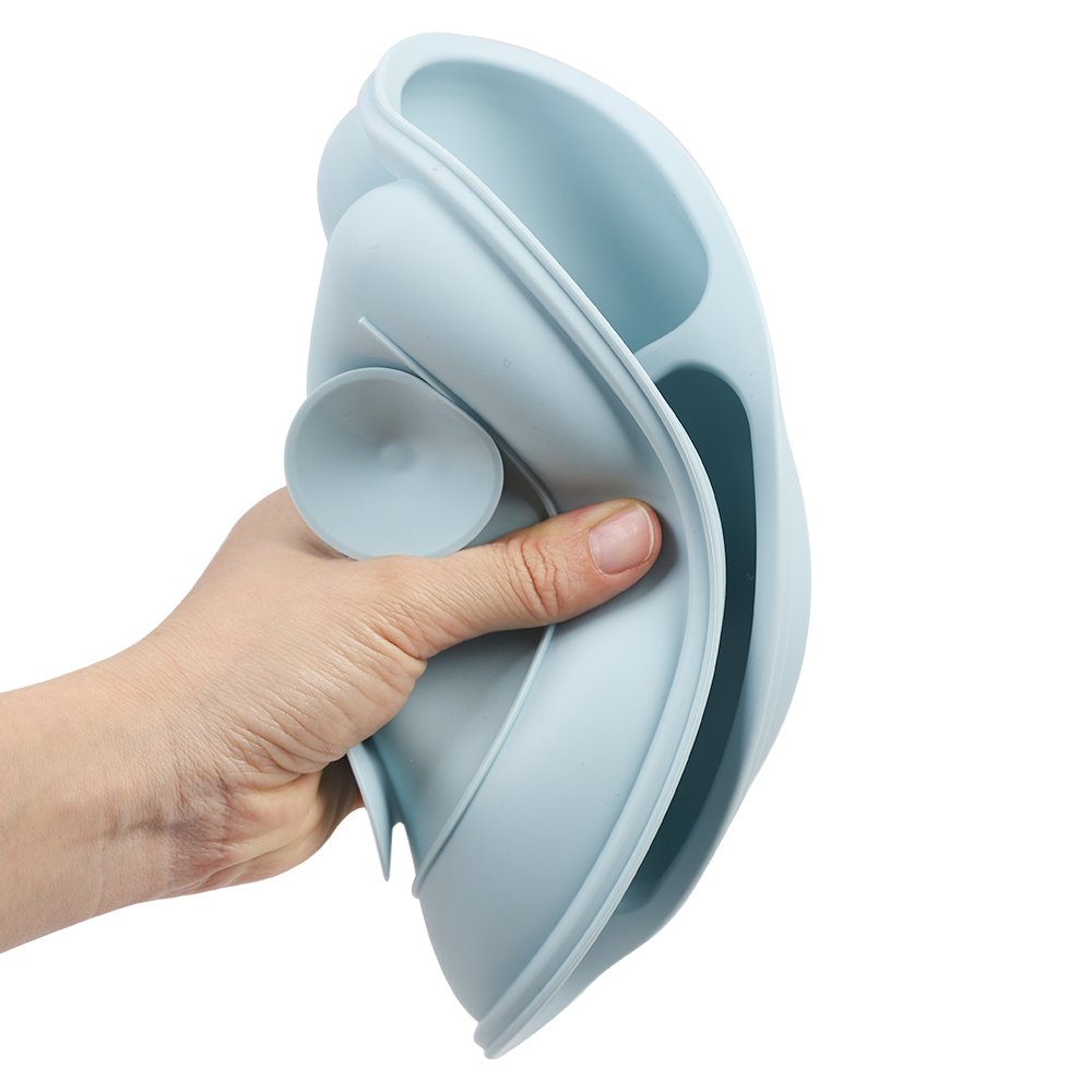 L’assiette à compartiments est équipée de 4 ventouses pour éviter que le repas de bébé ne finisse par terre ou sur son body. Le bol est muni d’une grosse ventouse qui l’empêche de glisser, assurant que votre enfant ne renverse pas son contenu.