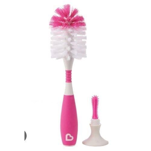 Goupillon en silicone pour biberons et tétines avec ventouse rose