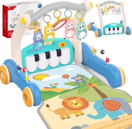 Mode Piano Rack : bébé joue allongé ou assis sur le tapis, activant les touches du piano avec les pieds ou les mains.