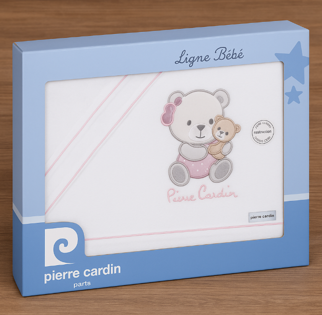 Livrée dans une boîte cadeau rigide Pierre Cardin Ligne Bébé avec fenêtre transparente