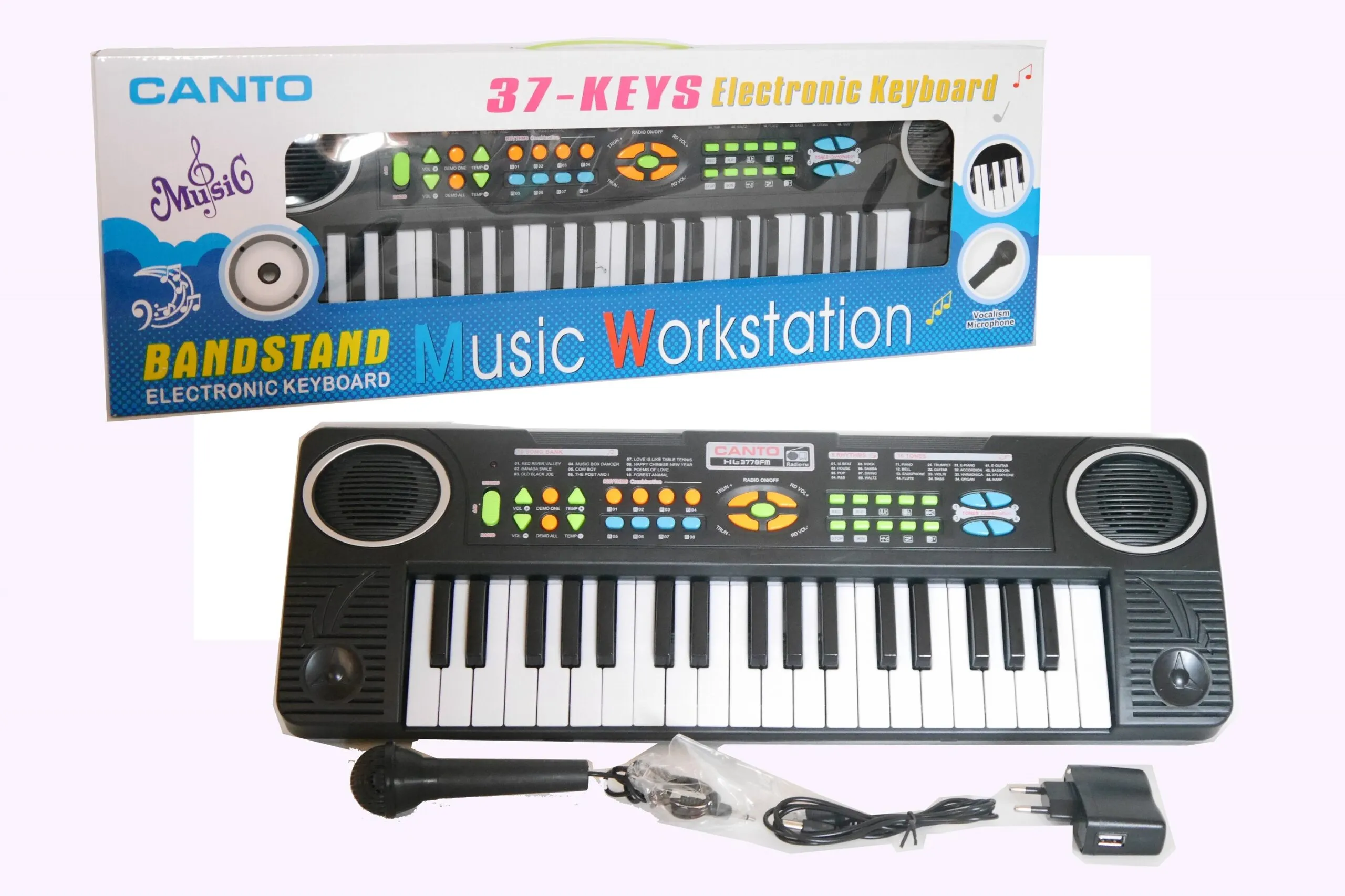 Offrez à votre enfant ses premiers pas dans la musique avec ce clavier électronique 37 touches. Il inclut un microphone, des sons variés, des rythmes intégrés et un adaptateur secteur.